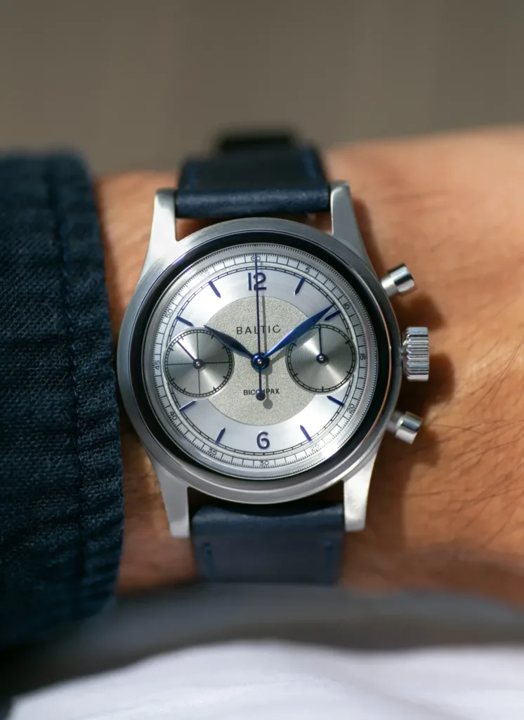 Baltic, ora un marchio consolidato con un assortimento variegato che include orologi subacquei e cronografi sportivi, ha le sue umili radici in un semplice progetto crowdfunded su Kickstarter. Il viaggio verso l’acclamazione che gode oggi non è stato breve, ma guidato dall’inflessibile Malec, si è evoluto a un ritmo sorprendentemente rapido. Gli esemplari inaugurali di Baltic, una duplice offerta (Il Baltic HMS 001 e il Bicompax 001), sono stati accuratamente progettati per colmare una lacuna nel mercato per gli appassionati di vintage economici ma raffinati. Questi orologi erano un calcolato connubio di influenze retrò degli anni ’40 – casse stratificate, vetri curvati, quadranti evocativi del passato – alimentati da movimenti robusti, affidabili e convenzionali di origine giapponese o cinese. E nonostante le potenziali controversie sull’impiego di componentistica cinese, Malec ha scelto deliberatamente l’unico movimento cinese che potesse essere accettato senza riserve, data la sua affinità con i venerati cronografi storici. Questo, tuttavia, è un tema che esploreremo in seguito.