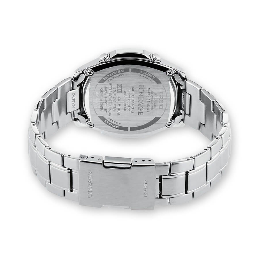 Il Casio LCW-M100DSE-1AER è dunque un modello radiocontrollato. Questo infatti presenta una grande precisione grazie ad una piccola antenna che grazie alla Tecnologia Multibrand 6 riesce a ricevere il segnale di ben sei differenti stazioni radio distribuite in tutto il mondo.