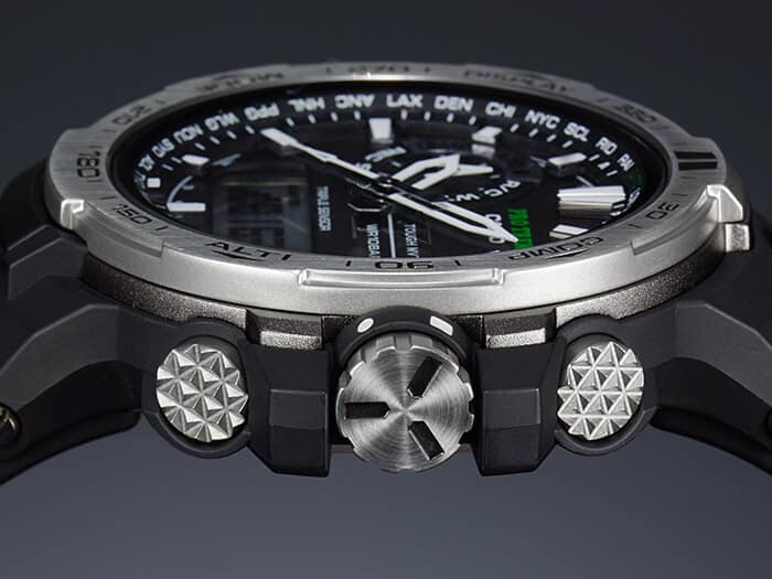 Il Casio prw 6000 ha una cassa da 52 mm, veramente molto ampio, ma realizzata con queste misure per offrire un ottima lettura delle funzioni presenti sul quadrante. La cassa è realizzata in acciaio inossidabile, mentre il bracciale è in silicone il meccanismo dell’orologio invece è al quarzo, ma si ricarica anche grazie all’energia solare.