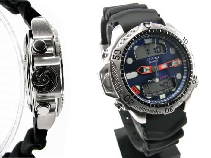 Il Citizen Aqualand II si rassomiglia molto al primo modello, l’unica differenza sostanziale è la cassa in titanio invece che in acciaio. Il Citizen aqualand 2 è un orologio completamente subacqueo dispone di profondimetro e degli allarmi e registrazione dati d’immersione, inoltre in più dell’uno misura anche la temperatura dell’acqua.