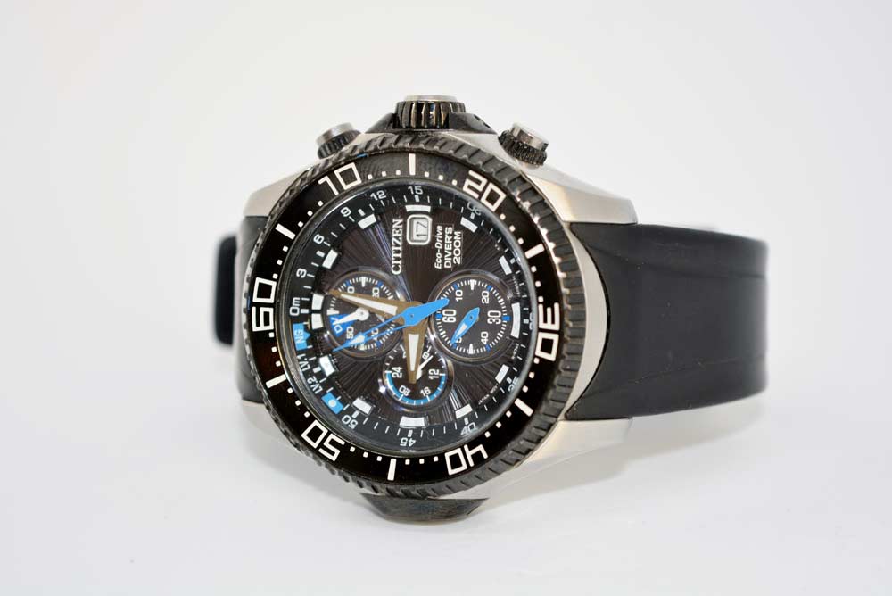 Le caratteristiche del Citizen Promaster Aqualand: l’orologio Citizen Promaster eco drive ha una cassa da 52,5 mm in acciaio con corone e pulsanti serrate a vite, dato obbligatorio per permettere all’orologio di essere impermeabile. La ghiera del modello e girevole unidirezionale, il cinturino comodo e funzionale è invece costruito il poliuretano. Il vetro è invece trattato per essere completamente antiriflesso. Il modello è impermeabile fino a 200 mt grazie anche al fondo serrato a vite.