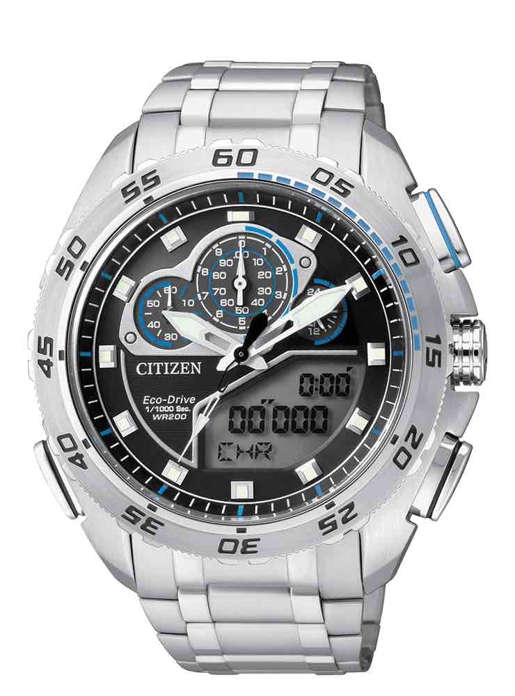 Il Citizen Promaster Crono millesimo modello JW0125-00E è un cronografo in grado di calcolare fino al millesimo di secondo, quindi con una rilevazione parziale dei tempi veramente precisa. Il Promaster Crono millesimo, si presenta con uno stile sportivo, la lunetta con cronografo è unidirezionale in acciaio di colore nero opaco.