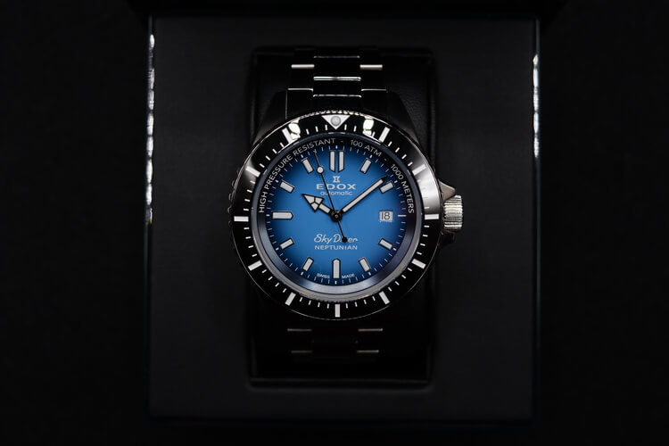 Tali orologi richiedono infatti architetture più complesse e quindi, un produttore più capace. Proprio a questo proposito, recentemente Edox ha presentato il suo Skydiver Neptunian, un potente subacqueo da 1.000 metri di profondità, un look classico e tutte le caratteristiche che vorremmo trovare in un subacqueo.