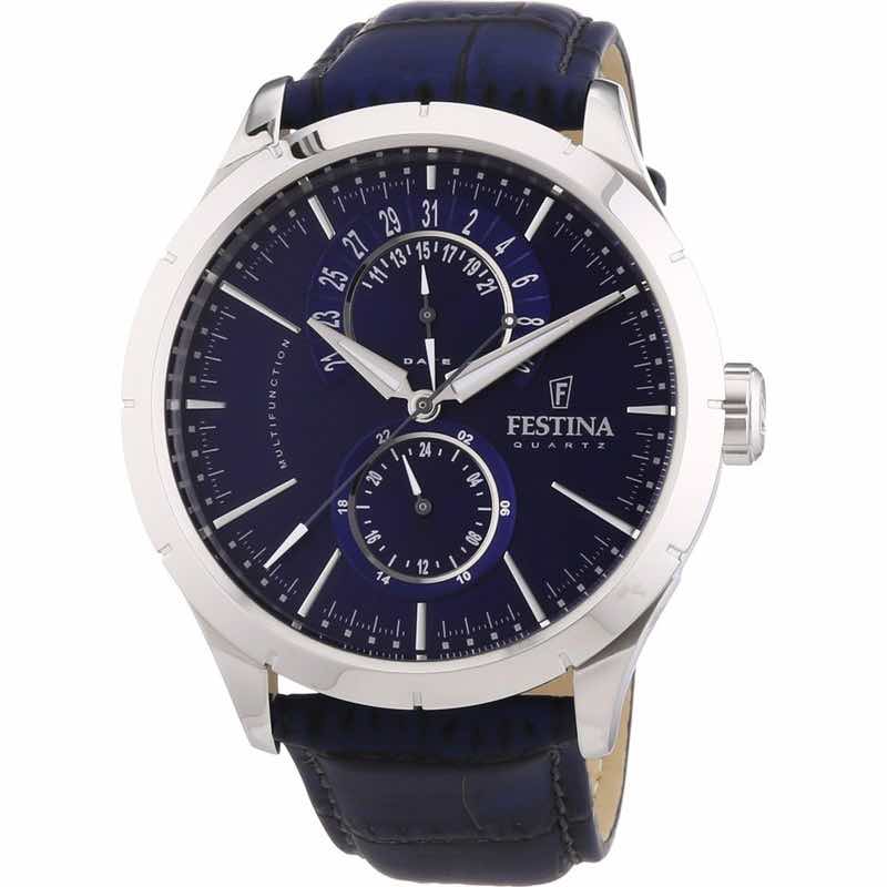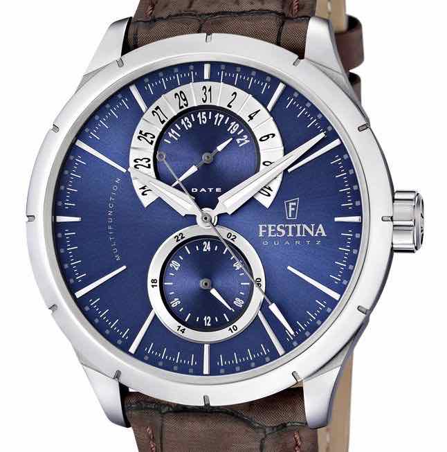 Il Festina F16573/5 è un modello che si distacca principalmente per i suoi colori dagli altri della linea, in quest’orologio troviamo il quadrante con sfondo blu, arricchito sempre con indici in acciaio e contatore dei minuti, ma non solo anche come negli altri modelli abbiamo l’indicatore di data e il contatore che indica le 24 ore.
