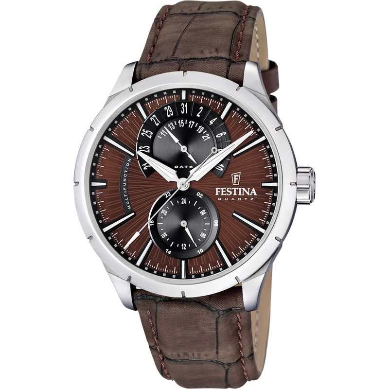 Il Festina trova nel suo quarto modello un orologio con cassa in acciaio da 45 mm, il quadrante è di colore nero con indici in color argento e segnalazione dei minuti. Anche questo modello dispone di un’indicatore di data e di un indicatore per la lettura dell’orario anche a 24 ore. Il bracciale di questo modello, si differenzia dagli altri per il suo colore, infatti nel Festina F16573/4 il bracciale è in pelle marrone.