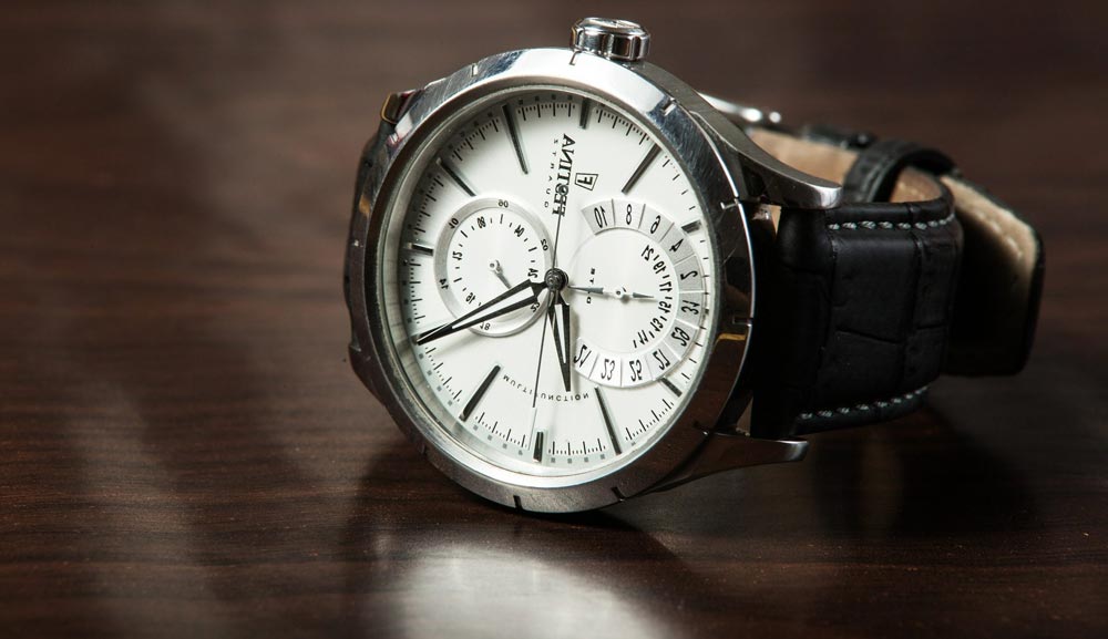 Il cinturino realizzato in pelle nera ha una lunghezza mens-standard, mente la larghezza è pari a 23 mm. L’orologio tecnicamente dunque, si presenta con buone qualità, ha la funzione data, offre una buona lettura analogica, e il movimento al quarzo gli permette al contempo di essere preciso ma economico.