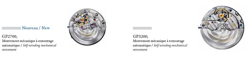 Questi movimenti automatici, hanno la particolarità di avere il rimontaggio automatico, le referenze sulle quali sono montati questi movimenti sono la GP2700, la GP3200, la GP3300 e la GP4500.