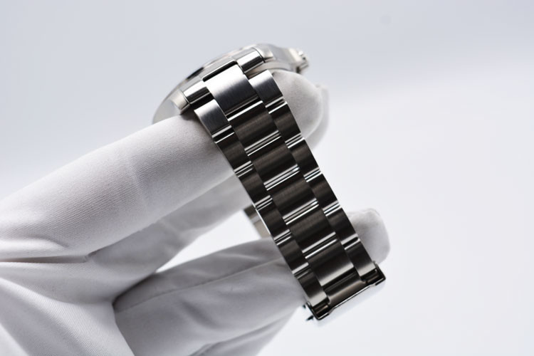 Il bracciale è realizzato in acciaio inossidabile di ottima qualità (è in vendita anche la versione con bracciale in pelle), con le maglie di tipo oyster a 3 file, completamente spazzolato e facilmente regolabile. Personalmente ho ordinato anche un cinturino Nato nero da abbinare all’orologio.
