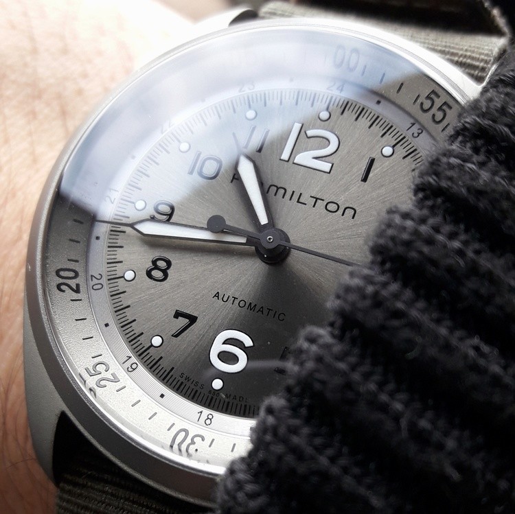 Si farà notare al polso: questa è la promessa che sembra fare Hamilton ai propri potenziali utenti. Il design aggiunge note di modernità all’ispirazione militare classica; il quadrante è il vero pezzo forte, e e in combinazione con la lunetta interna crea davvero un bellissimo aspetto; gli amanti della di queste linee si ritroveranno spesso a osservare questo modello, a volte dimenticando di guardare l’ora.
