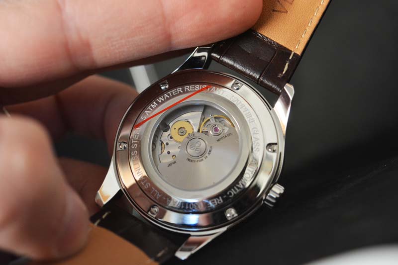 Arriviamo quindi ai dettagli tecnici, quelli che sicuramente moti di voi staranno aspettando: il movimento è un Miyota-Citizen 9015 da 24 rubini, per la prima volta montato in orologi Lorenz.