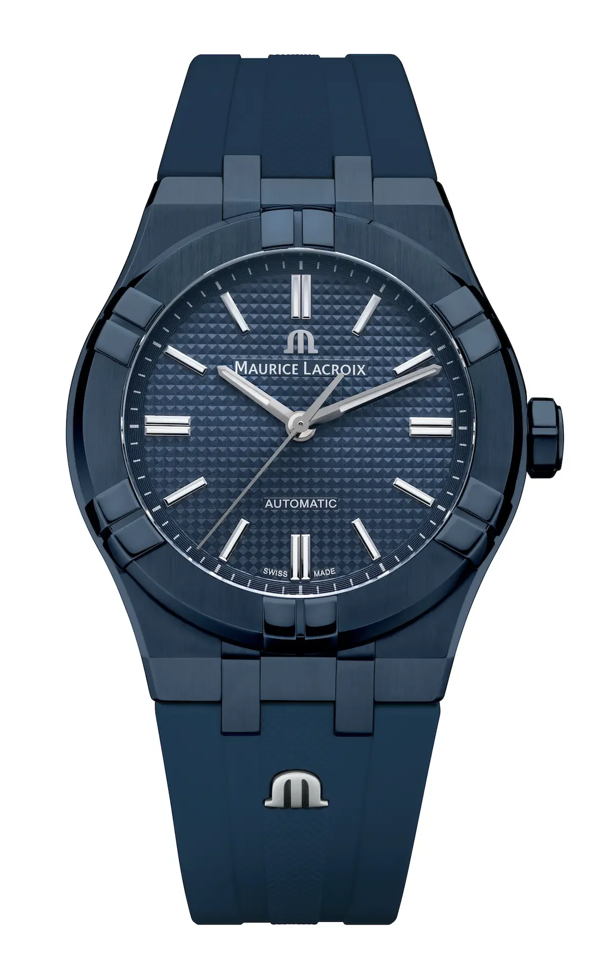 Derivato dal Calypso, un modello iconico degli anni ’90 di Maurice Lacroix ora fuori produzione, l’Aikon ha debuttato nel 2016 con movimenti al quarzo e si è evoluto nel 2018 introducendo versioni a movimento automatico. Questo orologio vanta una cassa impermeabile fino a 200 metri, caratterizzata da una forma a barile, un quadrante con texture distintiva, un vetro zaffiro piatto e una lunetta impreziosita da sei griffe doppie.