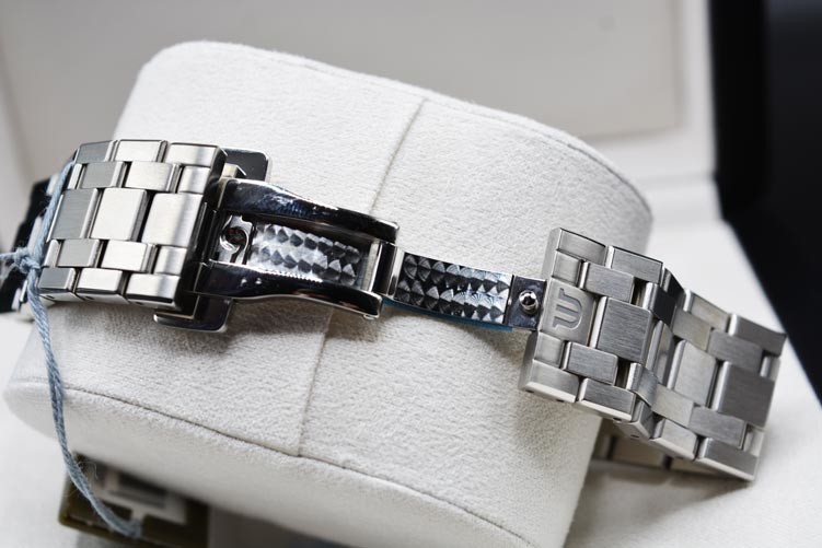 Proprio la sua chiusura a farfalla è la riprova della cura per i dettagli di Maurice Lacroix per il suo Aikon: presenta infatti una finitura Perlage su un lato, mentre l’altro è estremamente lucido, così da far svettare meglio il logo ad M ivi impresso.
