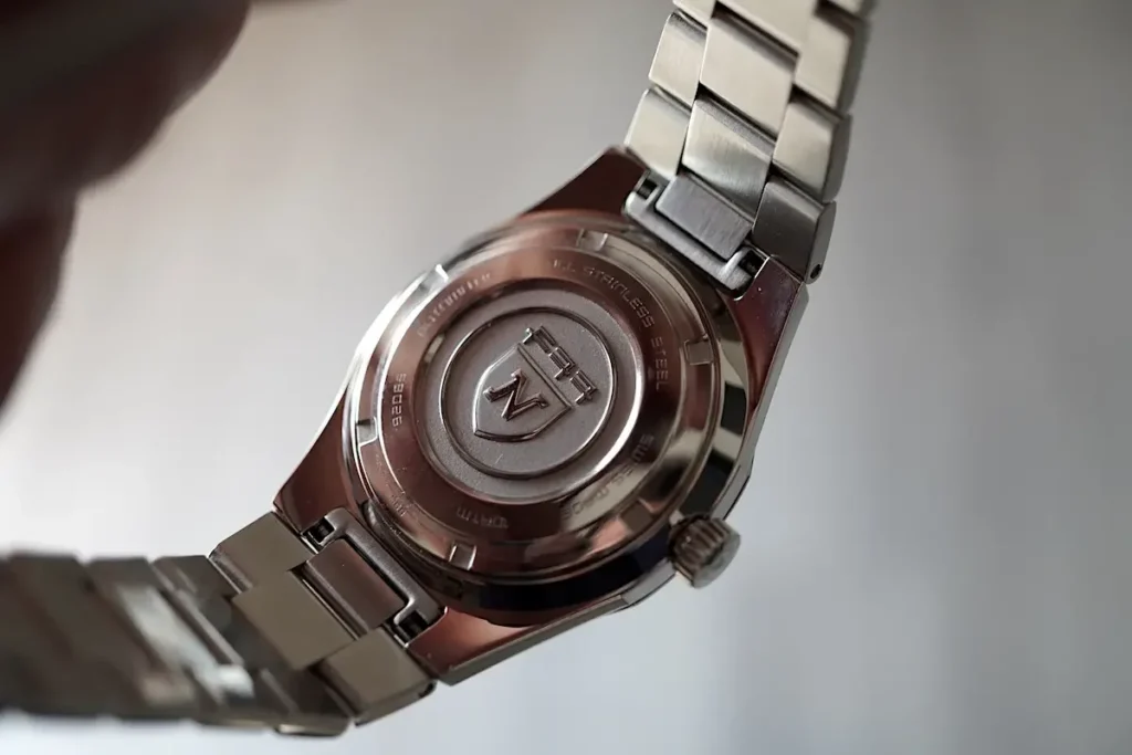 Un dettaglio distintivo del Nivada F77 Automatic è il suo bracciale integrato in acciaio, le cui linee si estendono armoniosamente dai lati della cassa, rispecchiando il design originale. Sebbene l’integrazione del bracciale con la cassa e il suo collegamento non siano fluidi come in alcuni concorrenti di alta gamma, essi rimangono fedeli all’estetica dell’epoca.
