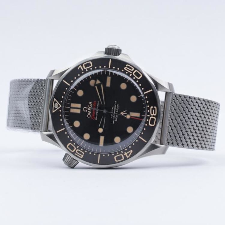Omega Seamaster Diver 300M 007 Edition ha un diametro di 42 mm, con uno spessore di 13,15 mm ed è leggermente più sottile rispetto alla media dei diver in grado di garantire le medesime performance subacquee, grazie alla particolare bombatura del vetro zaffiro impreziosito da uno speciale trattamento antiriflesso e da un’interessante curvatura ai bordi.