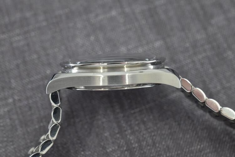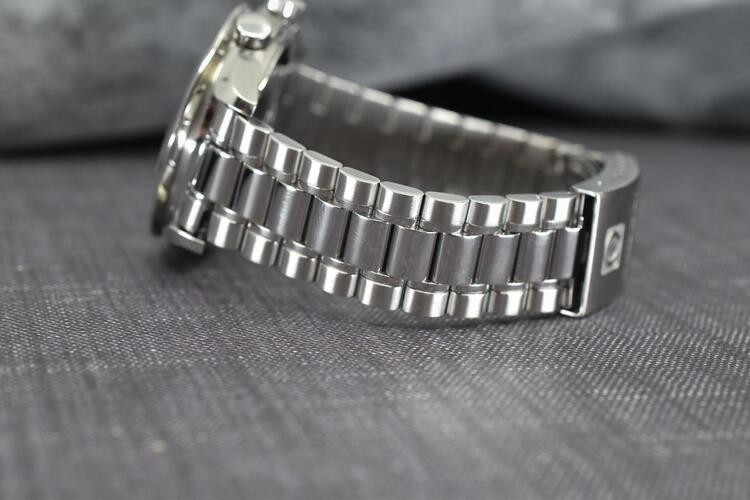 In linea con le altre dimensioni, la larghezza tra le alette è di 18 mm. Il braccialetto si assottiglia leggermente verso il basso fino a 16 mm alla chiusura. Il bracciale in sé non è niente di entusiasmante: è di buona qualità ma ammetto non mi fa impazzire. Motivo per cui trovo spesso, anche in vendita, combinazioni con cinturini Nato o in pelle. .