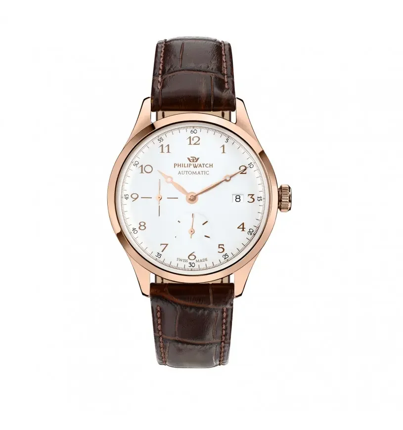 L’impermeabilità dichiarata di 30 metri, abbinata alla corona serrata a vite, racconta una solidità discreta, perfettamente in linea con la vocazione cittadina di questo segnatempo. Al polso, il cinturino in pelle marrone con stampa alligatore e fibbia ad ardiglione mantiene il profilo classico dell’insieme, aggiungendo una nota calda e rassicurante che bilancia la lucentezza della cassa. Nel complesso, percepisco questo Museum Limited Edition come una dichiarazione chiara di stile da parte di Philip Watch: un’eleganza che non ha bisogno di effetti speciali, ma si affida a proporzioni curate e dettagli ben dosati. La linea Museum, in questo senso, non si limita a richiamare il passato, ma lo rilegge in chiave attuale, trasformando la storia del marchio in un linguaggio contemporaneo. È un promemoria sottile di come il tempo resti il vero materiale con cui si costruiscono gli orologi migliori.