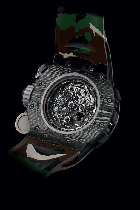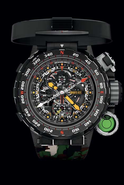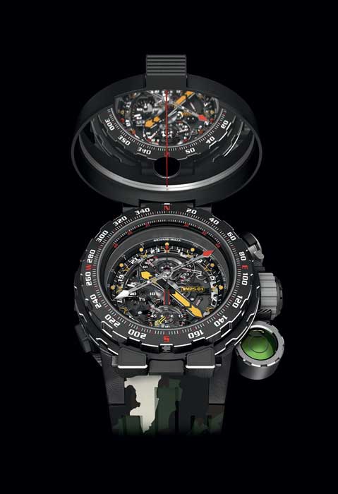 Gli specialisti della Richard Mille hanno lavorato svariati mesi nella ricerca della riduzione del peso e dell’ottimizzazione delle caratteristiche costruttive del movimento, con particolare attenzione alla precisione dell’indicazione cronografica e dell’affidabilità sul lungo periodo. Ciò ha dato luogo a numerose innovazioni tecniche, come il disegno e la realizzazione di molte componenti in titanio, come le leve, che hanno ridotto l’inerzia totale e di conseguenza il consumo di energia del 50%. Questo sviluppo ha reso possibile un significativo abbattimento dell’attrito sull’asse e l’eliminazione dei salti e delle vibrazioni della lancetta del cronografo durante le operazioni di partenza e stop della misurazione.