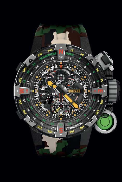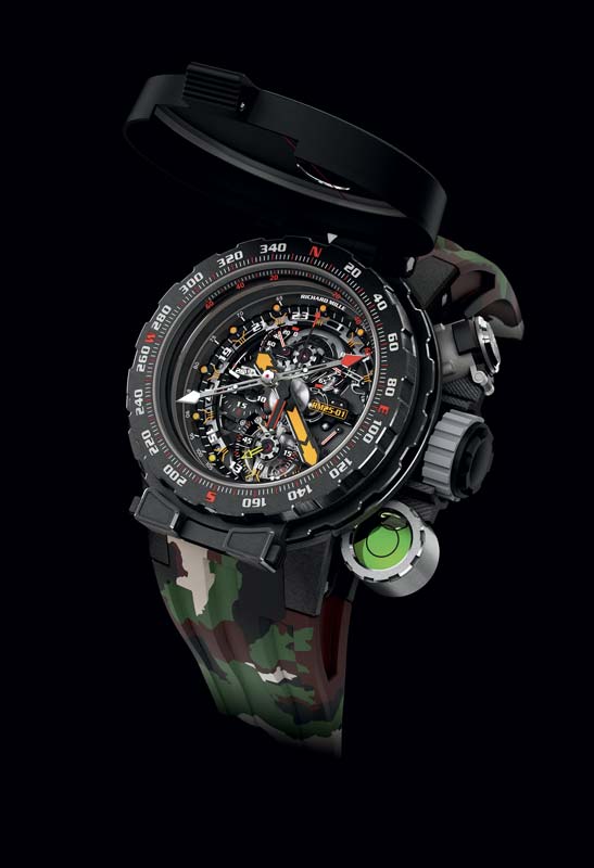 Il nuovo Richard Mille RM 25-01 Tourbillon Adventure è nato da uno studio realizzato da Richard Mille (l’uomo) e Sylvester Stallone, come tipo di orologio che John Rambo avrebbe potuto indossare. Parliamo di un cronografo high-tech che presenta anche un tourbillon, una bussola montabile, una livella e un sistema di sigillazione ermetica per la purificazione dell’acqua.