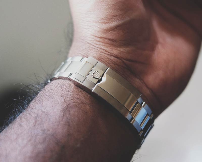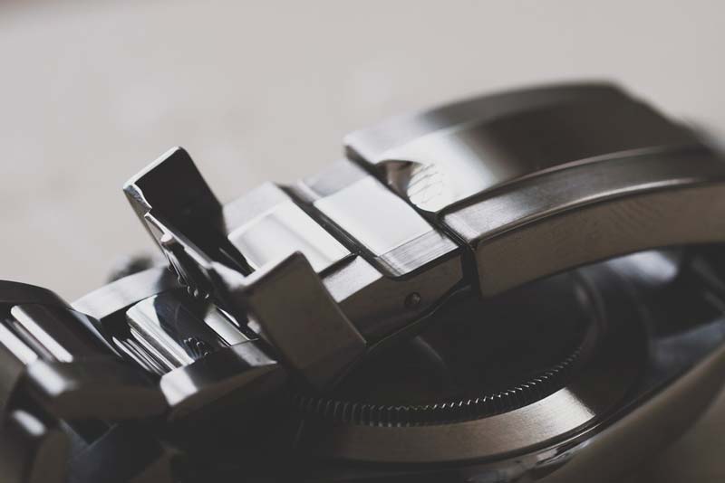 Il bracciale dell’orologio è in acciaio a maglie, la chiusura dell’orologio è Oysterlock, quindi assolutamente sicura in modo tale che non sia mai possibile per voi perdere l’orologio.