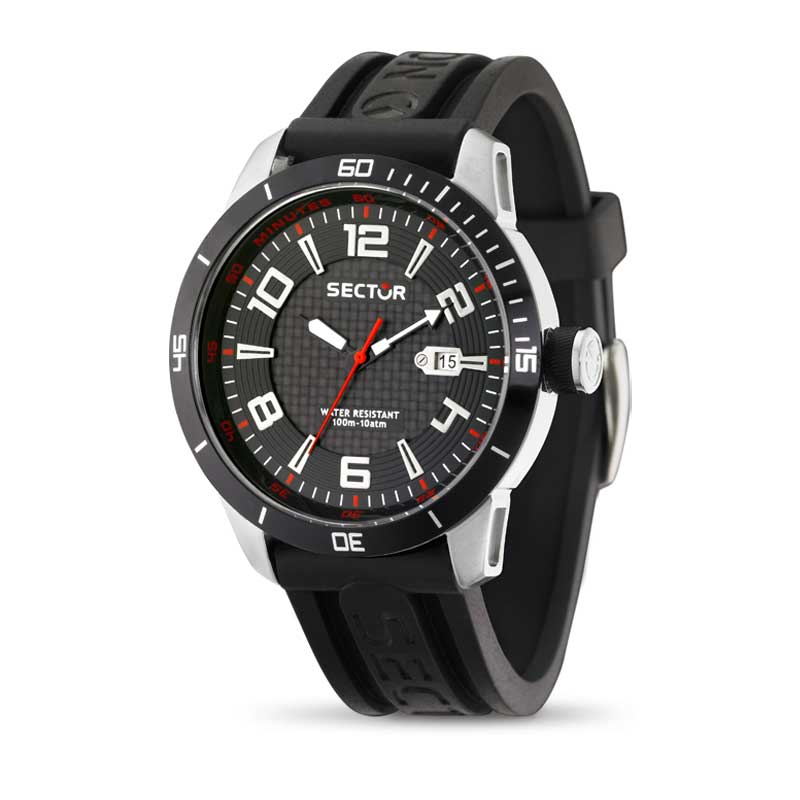 Il Sector R3251575002 ha un design sportivo è un ottima vestibilità grazie al morbido cinturino in caucciù con il quale è stato realizzato. La cassa dell’orologio invece, è in acciaio e misura 45 mm, con uno spessore di 12mm. Quest’orologio da uomo ha un quadrante con sfondo nero, stesso colore della ghiera che però segnala i tempi con il colore rosso, la lettura dell’orologio è analogica con numeri arabi per le ore pari, mentre con gli indici per le ore dispari, sul quadrante è visibile anche a ore tre il datario con sfondo bianco e data in nero. Il modello ha un movimento al quarzo ed è impermeabile fino a 100 metri. Il prezzo del modello R3251575002 è di 107,09 su Amazon, con uno sconto di 40,00 sul prezzo originale. Simile a questo modello c’è l’R3251575004, che conserva le stesse caratteristiche di quello sovra-descritto solo che in più riporta sul quadrante il nome e la firma del motociclista spagnolo Jorge Lorenzo, il prezzo su Amazon di questo modello è di 178,00 euro.