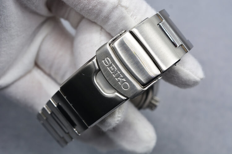 Con il bracciale in acciaio, invece, la referenza SRPD27 pesa 186,9 grammi. La larghezza di interlug è di 19 mm su entrambi i tipi di cinturino ed i collegamenti terminali curvi si adattano in maniera perfetta alla cassa, creando una sorta di effetto pseudo-integrato che oggi è molto in voga tra gli appassionati di orologi sportivi. Il bracciale in acciaio inox è dotato di maglie di sicurezza a spillo, 4 micro regolazioni sulla chiusura e una chiusura pieghevole di sicurezza a 2 pulsanti.