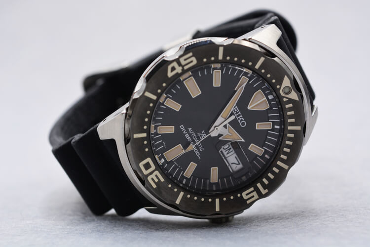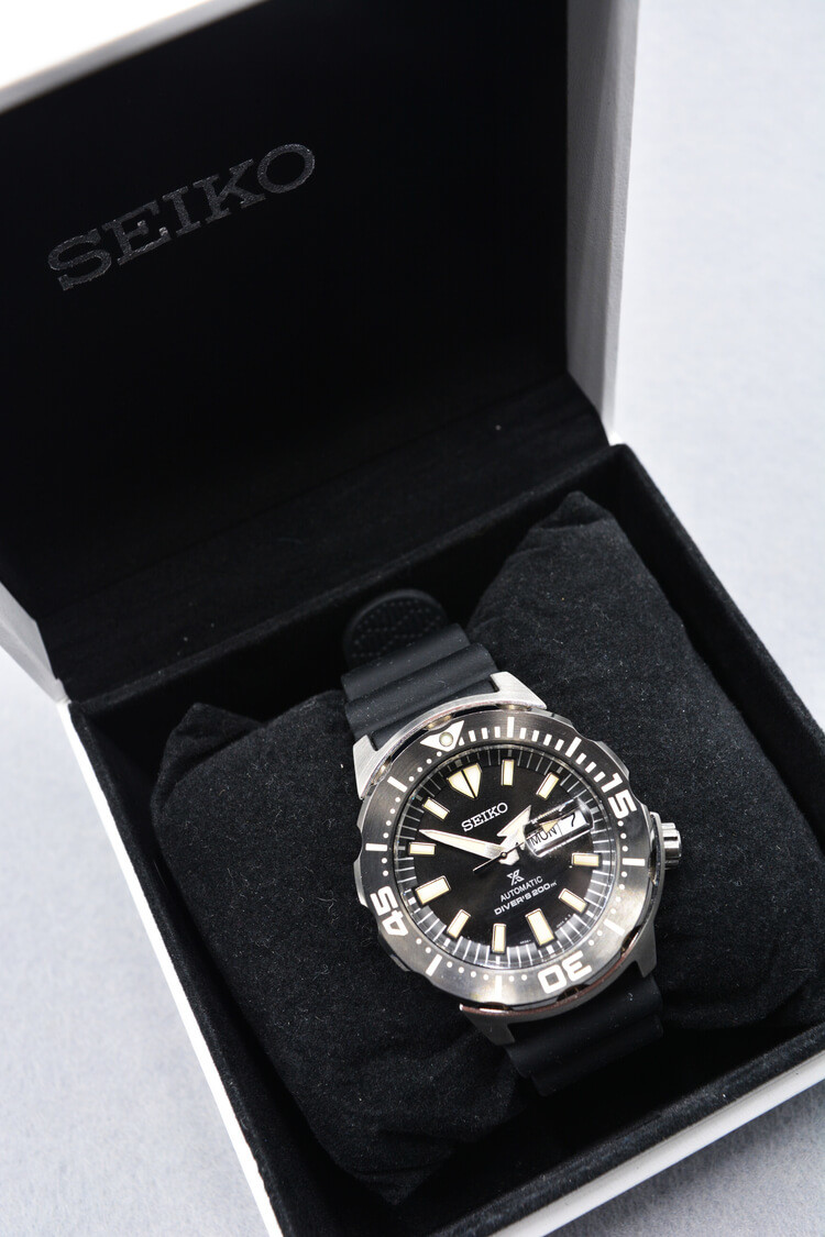 All’interno della gerarchia degli orologi Seiko il ventaglio di scelte è ampissimo, per tasca e stile. Possiamo trovare gli orologi subacquei Prospex Luxe, veri e propri pillar – solidi ed affidabili – con finiture premium e prezzi al dettaglio che si aggirano attorno ai 1000 Euro. Poi ci sono i nuovi Seiko 5s che sono durevoli e resistenti all’acqua, ma non per le immersioni (né sono contrassegnati come “subacquei” dalla casa madre, poiché mancanti di alcune caratteristiche e non testati secondo gli standard ISO 6425), dai 300 Euro in su. Proprio tra questi due, la linea Monster si è abilmente scavata la sua nicchia personale: parliamo di un diver che soddisfa tutti i requisiti dell’orologio subacqueo ISO 6425, per 429 Euro su cinturino in gomma e 469 Euro montato su bracciale in acciaio inossidabile.
