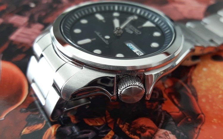 La maggior parte dei Seiko 5, e anche il professionale SKX, erano dotati del vecchio calibro 7S26. Nelle nuove referenze Sport, Seiko ha deciso di far muovere il tempo tramite il pur collaudato 4R, che aggiunge il fermo macchina e la carica manuale rispetto al proprio predecessore.