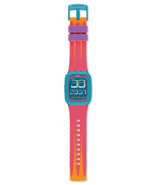 L’ultimo modello che vogliamo proporvi è lo Swatch Digiwhale, quest’orologio ha delle linee sinuose ed è molto leggero e sopratutto con uno stile completamente high-tech. L’orologio fa parte della collezione Red White & Blue. Il modello con display a sfondo grigio a specchio, presenta numeri in argento cromato.