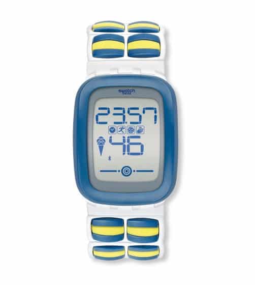 L’orologio digitale Swatch Cubezero è un modello anche questo sportivo e giovanile, si presenta con una cassa in plastica bianca con la lunetta blu, il bracciale ha sfondo bianco ha delle bande su tutto l’orologio di colore blu e giallo.