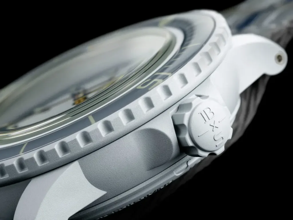 Dettagli come il logo Swatch impresso sul fianco e l’inclusione dei loghi di entrambi i marchi sulla corona accentuano la fusione tra i due mondi. Tuttavia, pur ispirandosi all’originale, ci sono elementi distintivi che contraddistinguono questo modello.