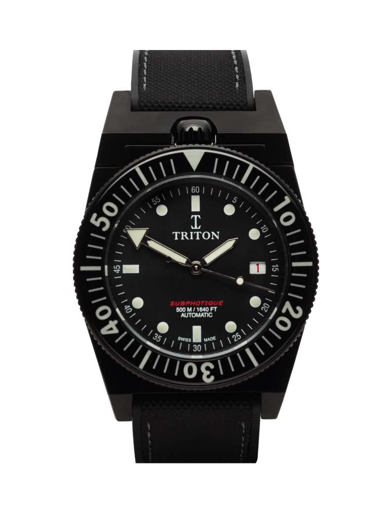 Tre anni fa, partendo da quel modello, si crea il nuovo Triton Subphotique, figlio indiretto di quella tradizione. Figlio anche degli anni ’10, però, questo orologio doveva avere per forza qualcosa in più. Per esempio, rispetto ai 200 metri di profondità del modello precedente, il Subphotique arriva a 500 metri (+ 300), quindi funziona anche completamente al buio. A quella profondità, infatti, la luce non arriva.