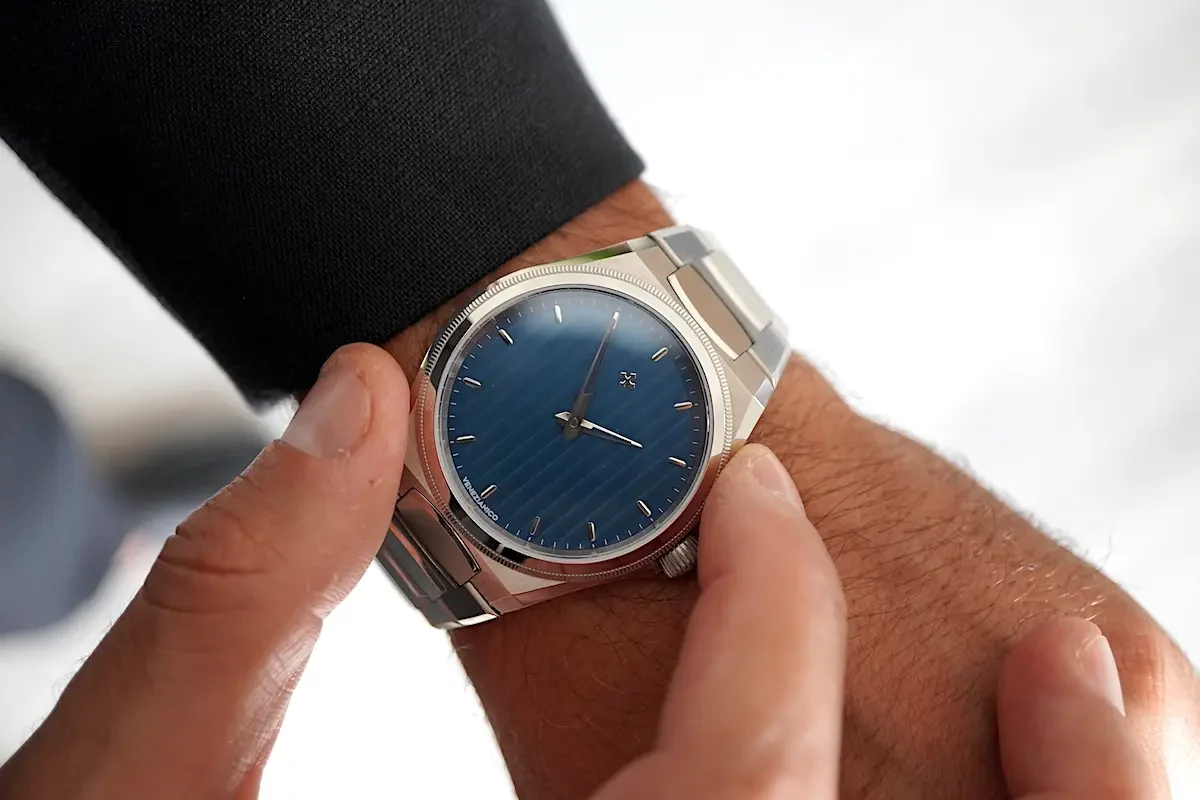 Sul mercato, si colloca perfettamente come concorrente del PRX, offrendo una valida alternativa. Il design è classico, caratterizzato da ampie superfici piatte e sfaccettature ben definite, che si integrano armoniosamente con il bracciale.