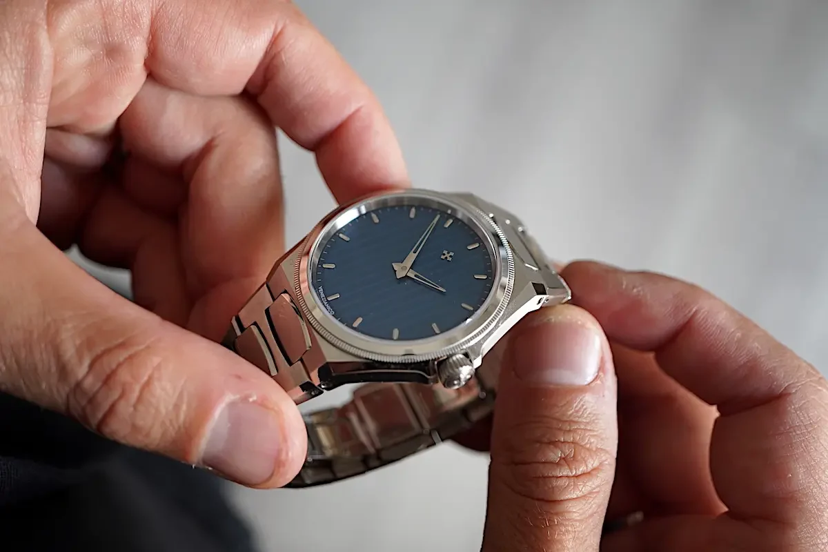 Avevo già avuto l’opportunità di vedere la collezione in anteprima, ma quando ho aperto la scatola per ammirare l’orologio la mia reazione è stata un chiaro “Wow”. Sono un grande appassionato degli orologi con bracciale integrato in acciaio, resi celebri negli anni ’70 da designer iconici come Gerald Genta, autore di modelli leggendari come il Patek Philippe Nautilus, l’Audemars Piguet Royal Oak e l’IWC Ingenieur.