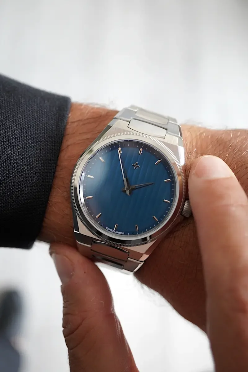È vero, un altro orologio con bracciale integrato, ma vista la crescente popolarità di questo stile, è del tutto naturale che anche Venezianico abbia deciso di accettare la sfida. Una delle caratteristiche che spicca di più in questo modello è lo spessore di appena 8,9 mm, che lo rende estremamente comodo da indossare.