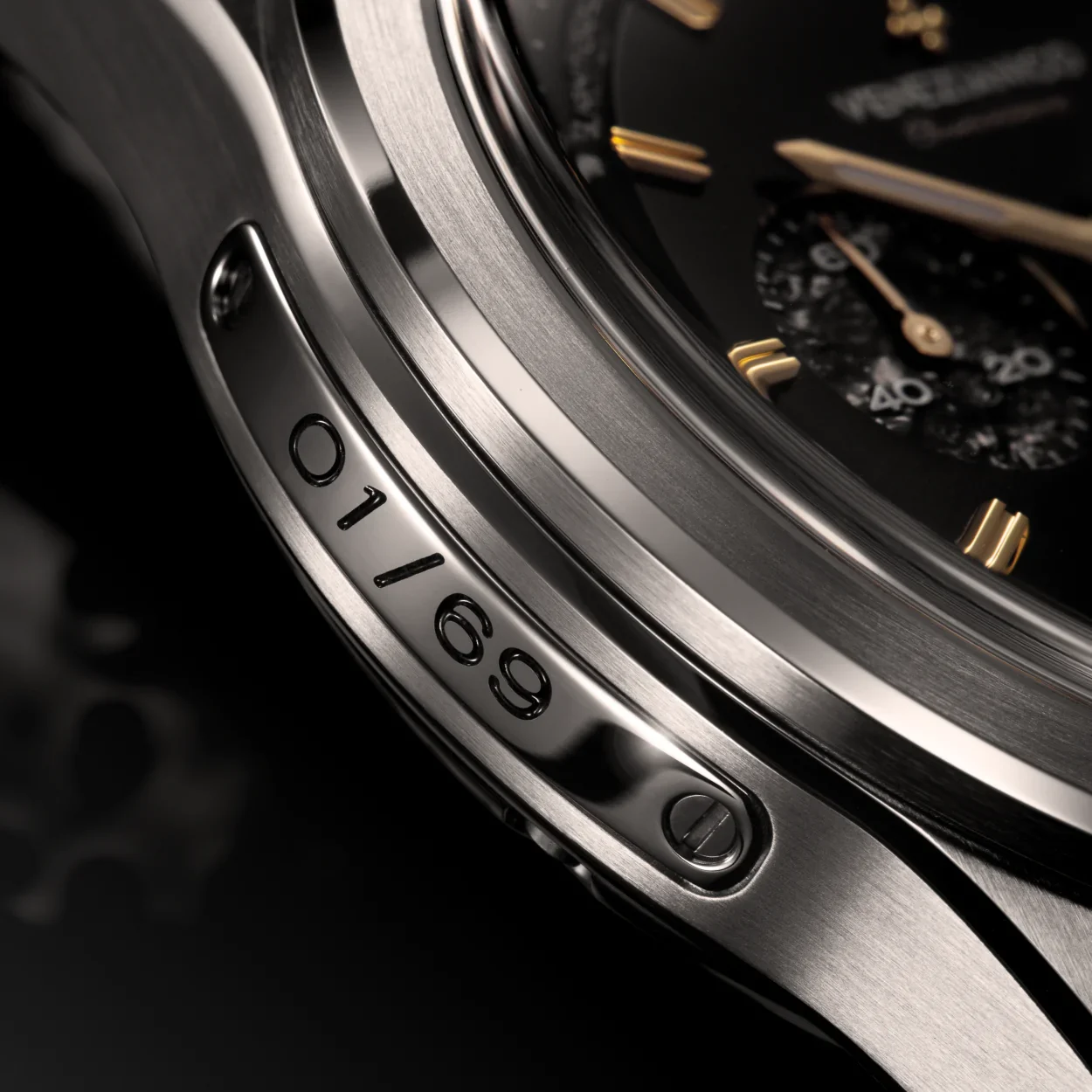 Un ultimo dettaglio della cassa è rappresentata da una placchetta applicata sul fianco sinistro che indica il numero individuale dell’orologio.