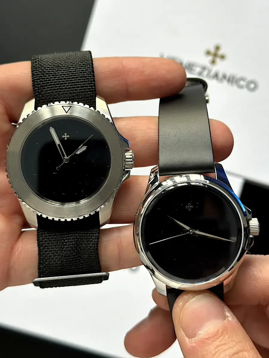 Il Redentore, disponibile sia nella versione da 40 che da 36mm al prezzo di 500 euro, e il Nereide Ultrablack, offerto a 600 euro, si distinguono per il loro quadrante di un nero profondo. Questo effetto ribadisco che è ottenuto grazie all’impiego di una speciale vernice giapponese denominata Musou Black, sviluppata nel 2020 dalla Koyo Japan Co Ltd, capace di assorbire fino al 99,4% della luce. Indossare questi orologi rappresenta un’esperienza singolare che non manca di catturare l’attenzione altrui; al lavoro, ad esempio, hanno attirato gli sguardi di tutti.