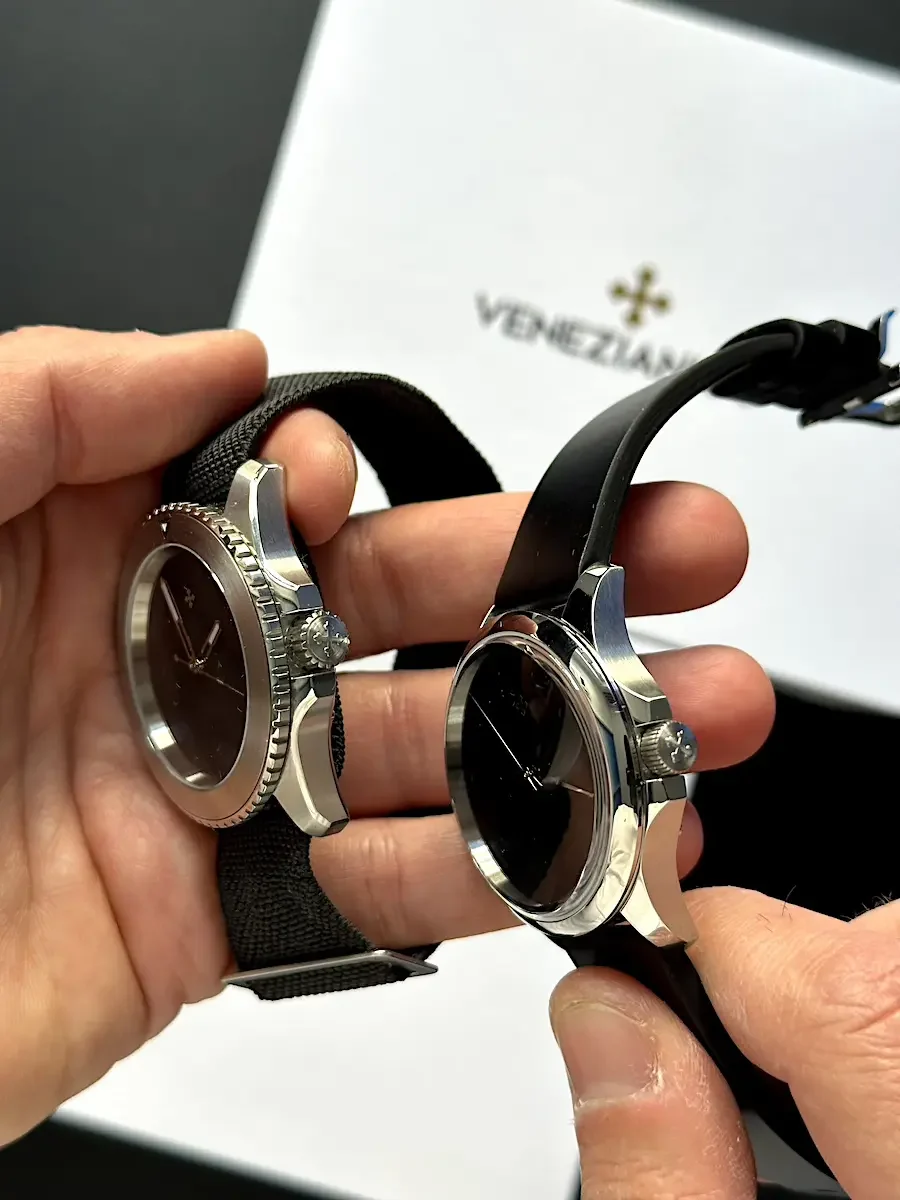 Nata nel contesto veneziano, questa emergente maison orologiera italiana è il risultato dell’entusiasmo e dell’intraprendenza imprenditoriale di due giovani fratelli che hanno integrato i principi fondamentali della tradizione veneziana nella visione della loro azienda; hanno saputo tessere i valori distintivi della cultura veneziana nel tessuto della loro visione aziendale, valorizzando l’innovazione, la diversità culturale e lo spirito avventuroso. L’introduzione della vernice Musou Black sui quadranti, dapprima sul modello Redentore e successivamente sul Nereide, ha segnato una svolta nel design, conferendo agli orologi un aspetto unico. Questa vernice, capace di assorbire il 99,4% della luce, elimina visivamente ogni dettaglio superficiale, creando un effetto di “sparizione” dei materiali coperti e accentuando un profondo nero che cattura inevitabilmente lo sguardo.